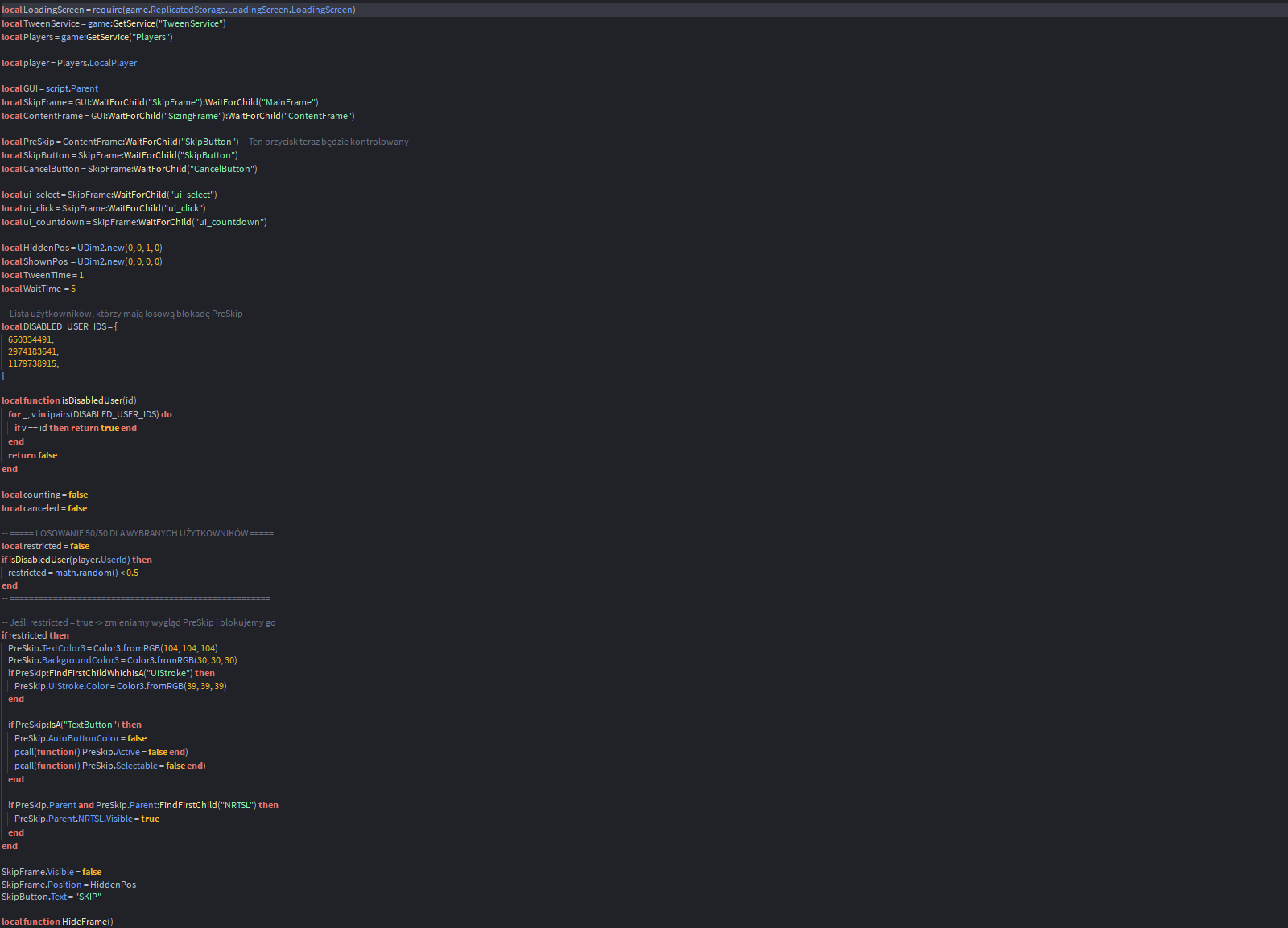 An internal investigation and a subsequent script leak confirmed that Alexkist and Josh Slayer had been intentionally excluded from the skip functionality by name.