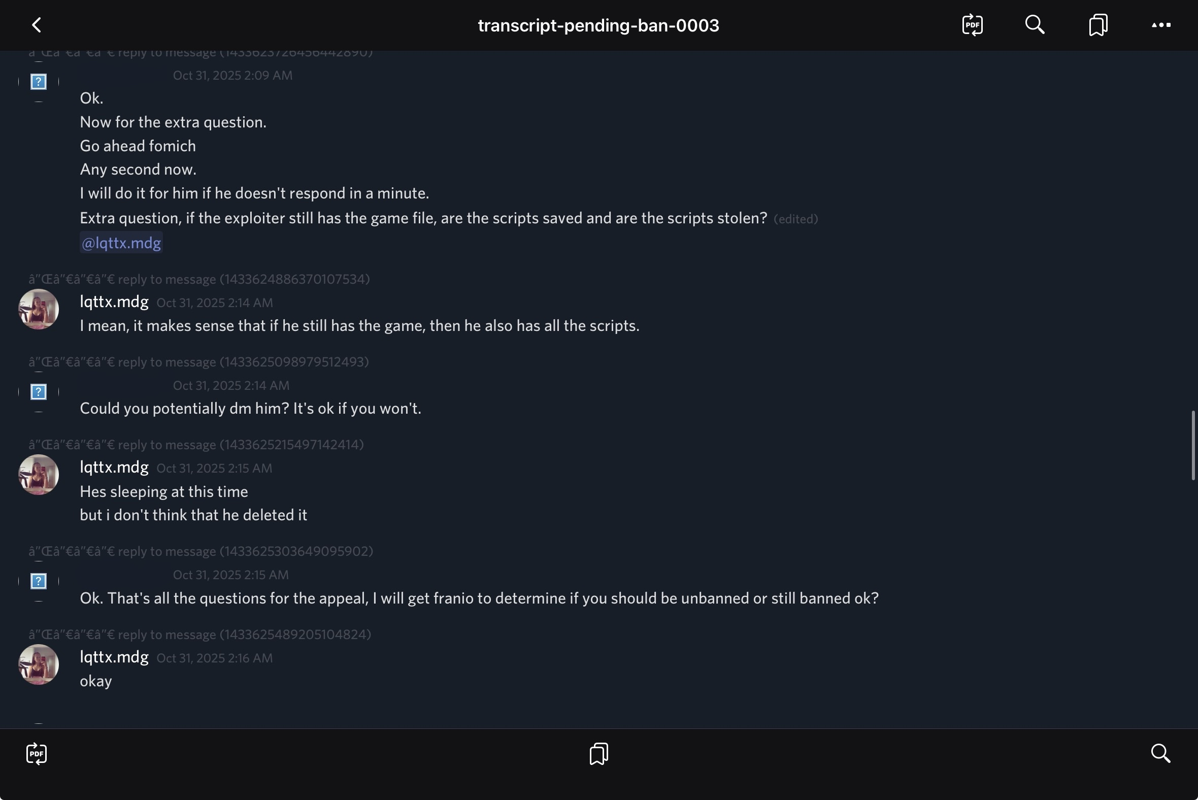 The case was escalated to the Internal Affairs Department, which was provided with partial excerpts of the script code as evidence.
